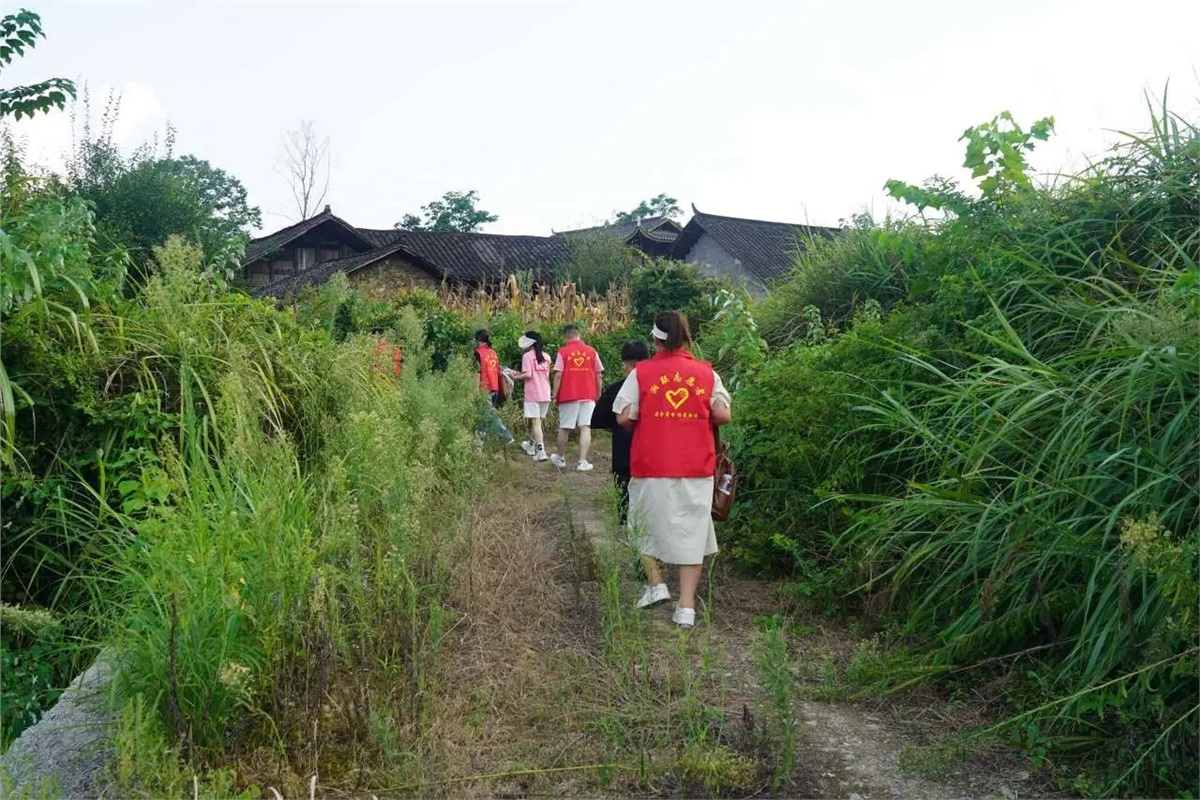 ★不懼高溫,志愿者們在當地干部的帶領下,步行趕往探訪學生家中