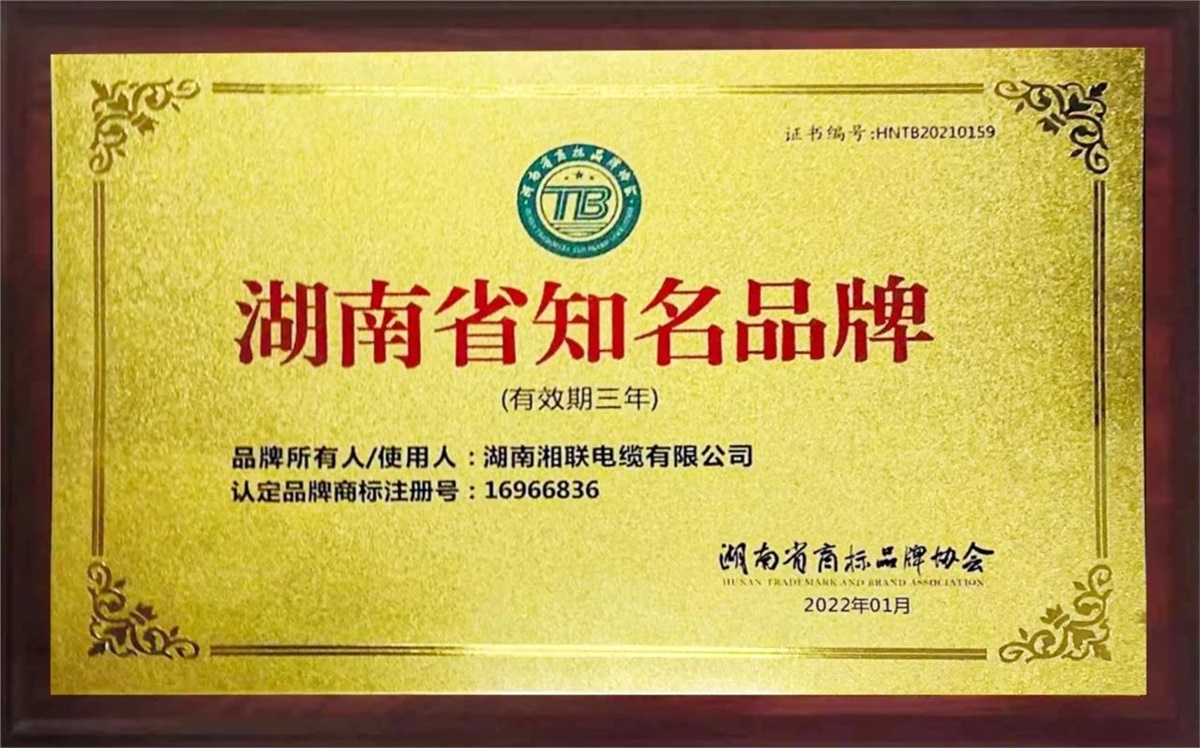 喜報 | 湘聯(lián)電纜獲評“湖南省制造業(yè)品牌培育示范企業(yè)”