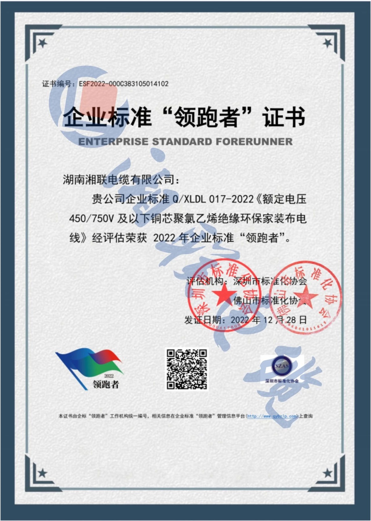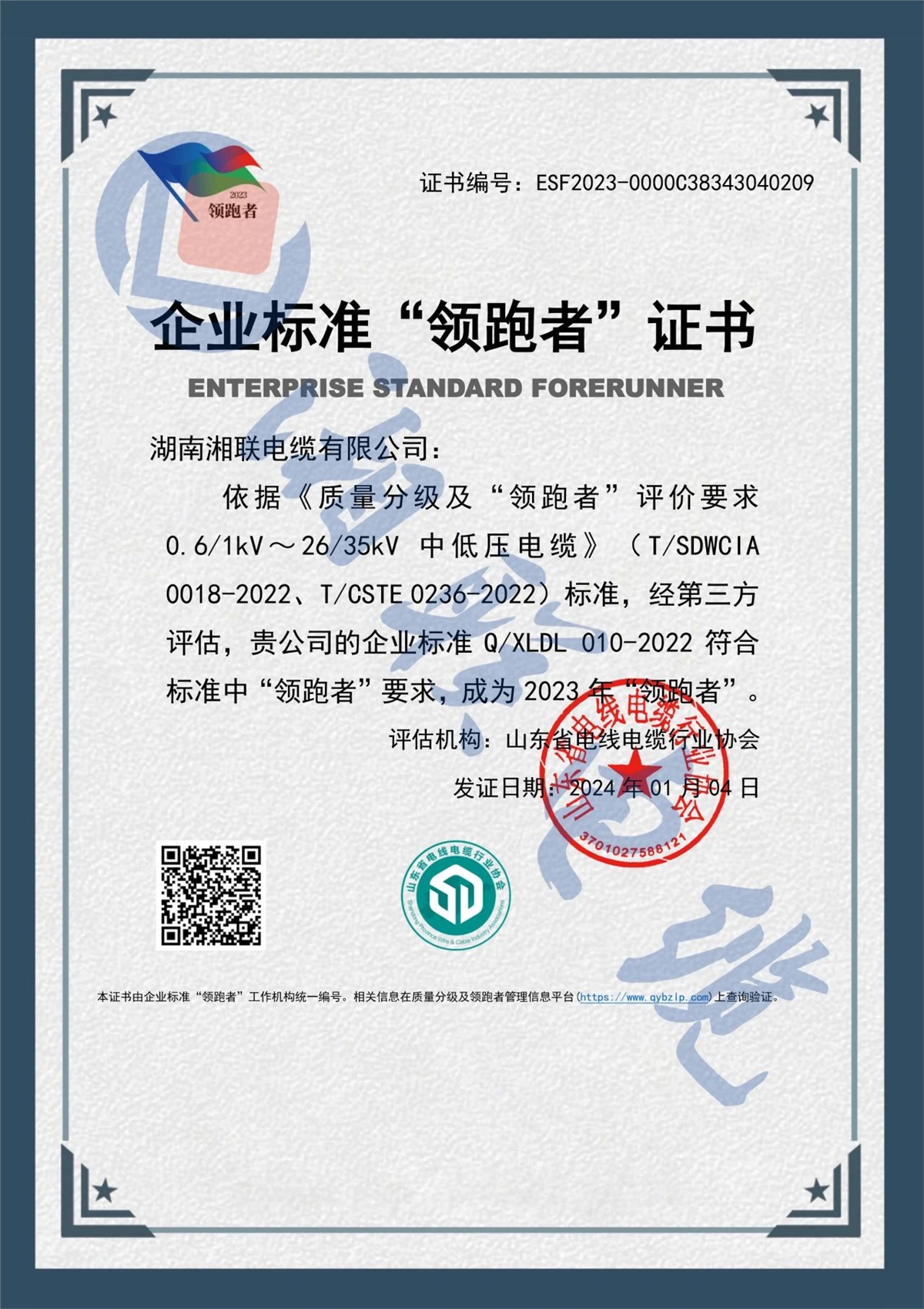 自湘聯(lián)電纜成立以來,公司研發(fā)了一系列具有自主產(chǎn)權(quán)的專利,累計申請專利50余項,多次參與編寫國家標準和團體標準,多款產(chǎn)品企業(yè)標準獲評國家“企業(yè)標準領(lǐng)跑者”稱號,企業(yè)的技術(shù)實力和核心競爭力不斷提升。2023年,公司被評為“湖南省省級企業(yè)技術(shù)中心”。